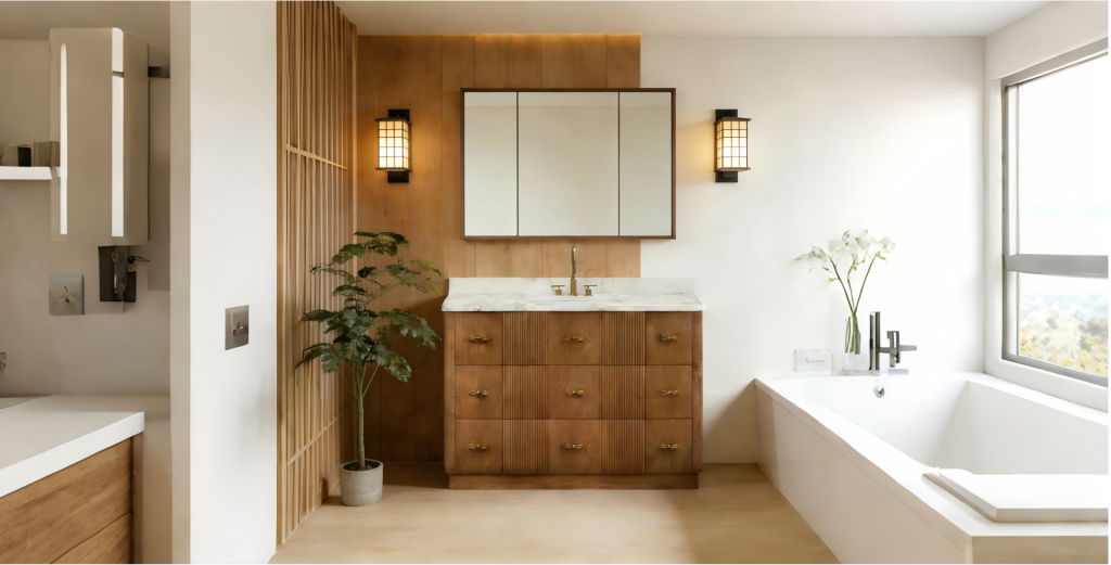 Quality is in the details. Each Chestnut 48 unit undergoes a 12-stage finishing process. This multi-layered approach ensures a deep, rich cherry color that is water-resistant and smooth to the touch, capable of withstanding the humid environment of a bathroom.