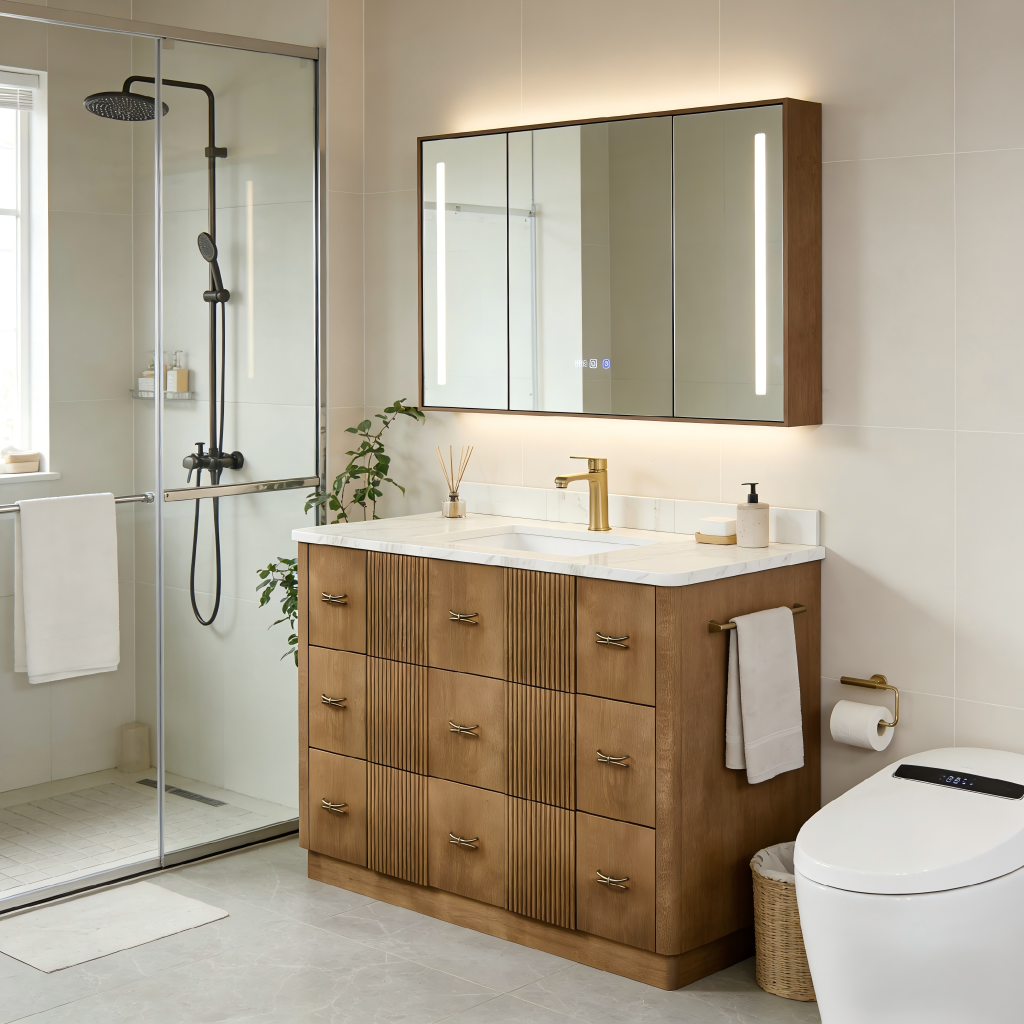 The Chestnut 48 is not just a piece of furniture; it is a testament to superior material selection and meticulous manufacturing processes. Designed for both residential luxury and commercial durability, this vanity stands out in the competitive global market.